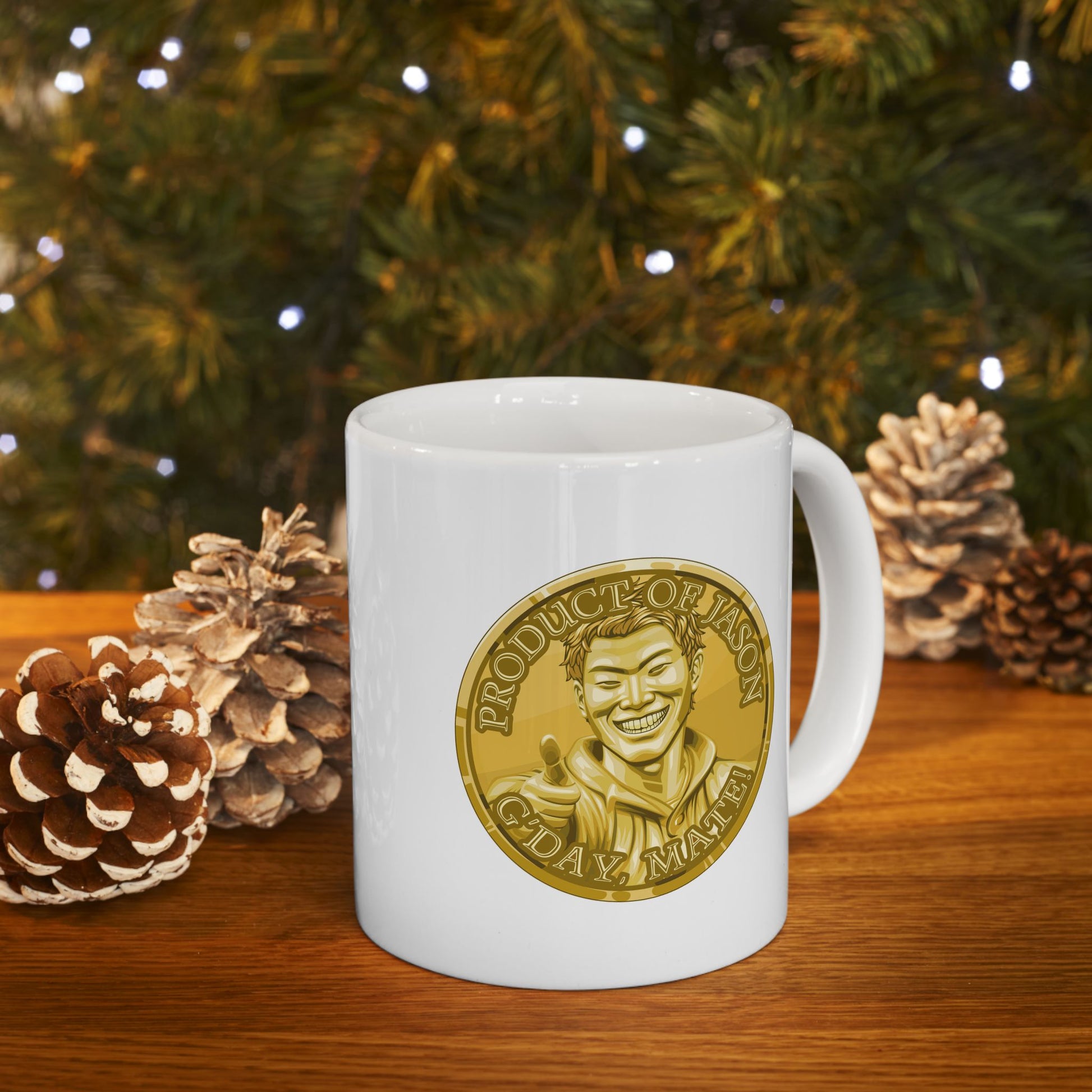 Gold Spirit Coin Coffee Mug of He Who Fights With Monsters Jason Asano Gold Coin Coffee Mug G'day Mate Product of Jason Coffee Mug