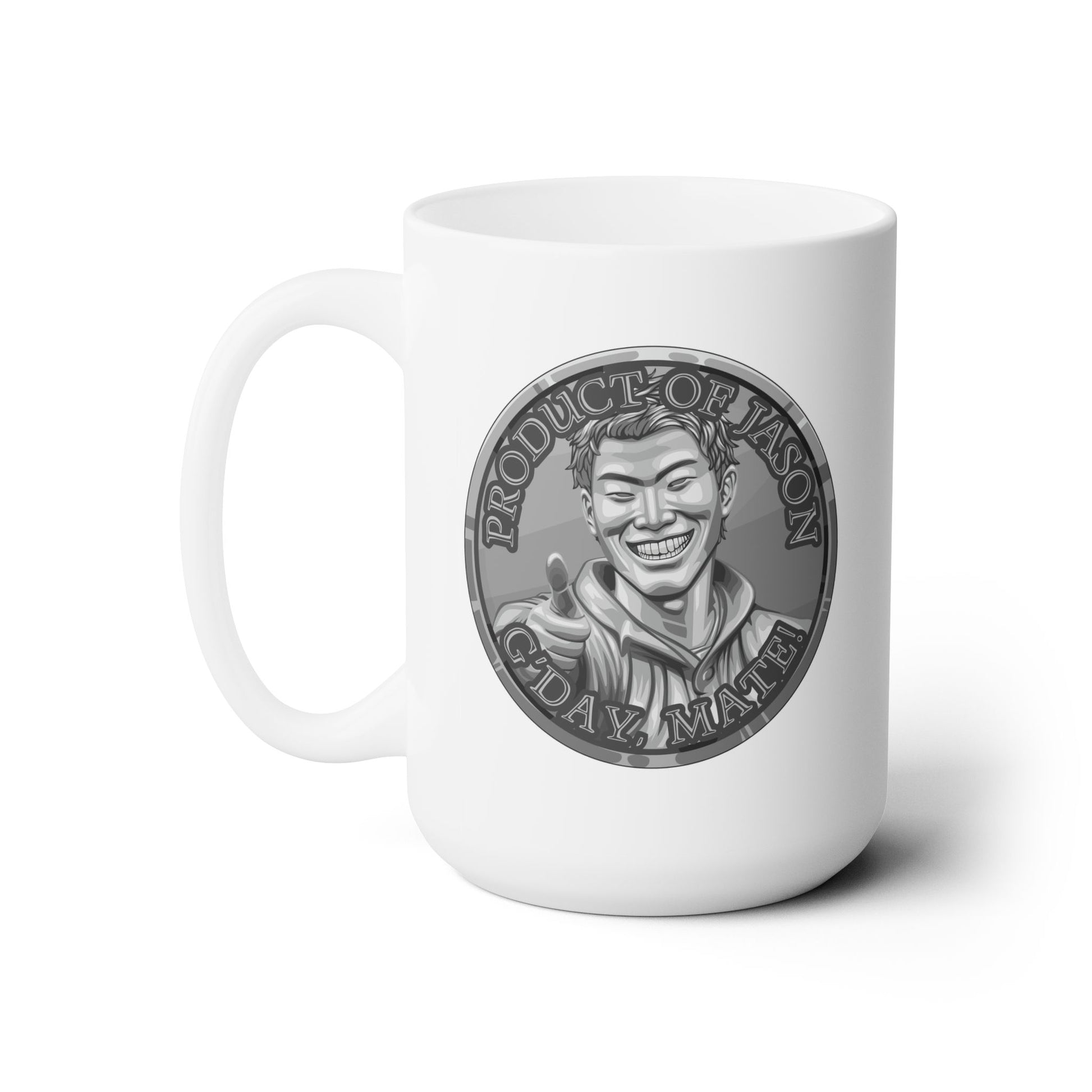 Silver Spirit Coin 15 oz Coffee Mug of He Who Fights With Monsters Jason Asano Silver Coin Coffee Mug G'day Mate Product of Jason Coffee Mug