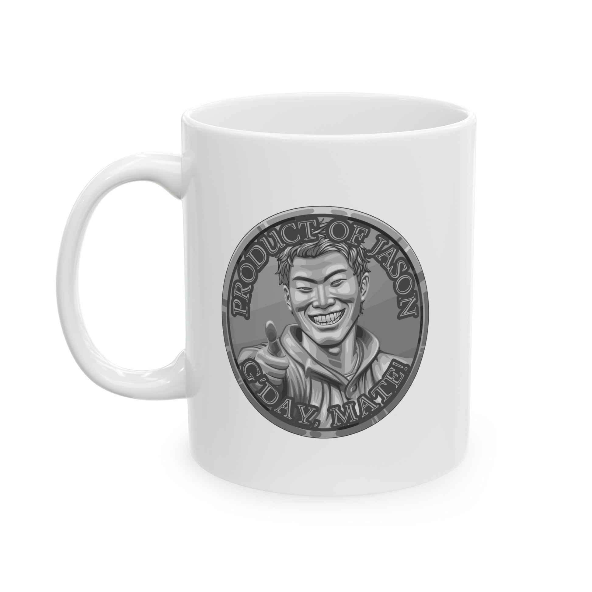 Silver Spirit Coin Coffee Mug of He Who Fights With Monsters Jason Asano Silver Coin Coffee Mug G'day Mate Product of Jason Coffee Mug